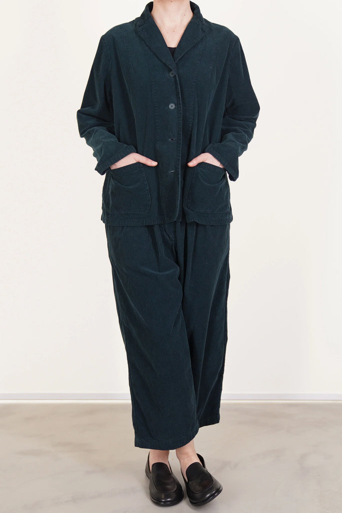 Crafted from fine corduroy, the jacket is garment dyed and includes bias-bound seams on the interior for a refined finish. featuring front patch pockets, a regular fit, and a subtle back slit detail. it has tailored, slim sleeves and a button-front closure.