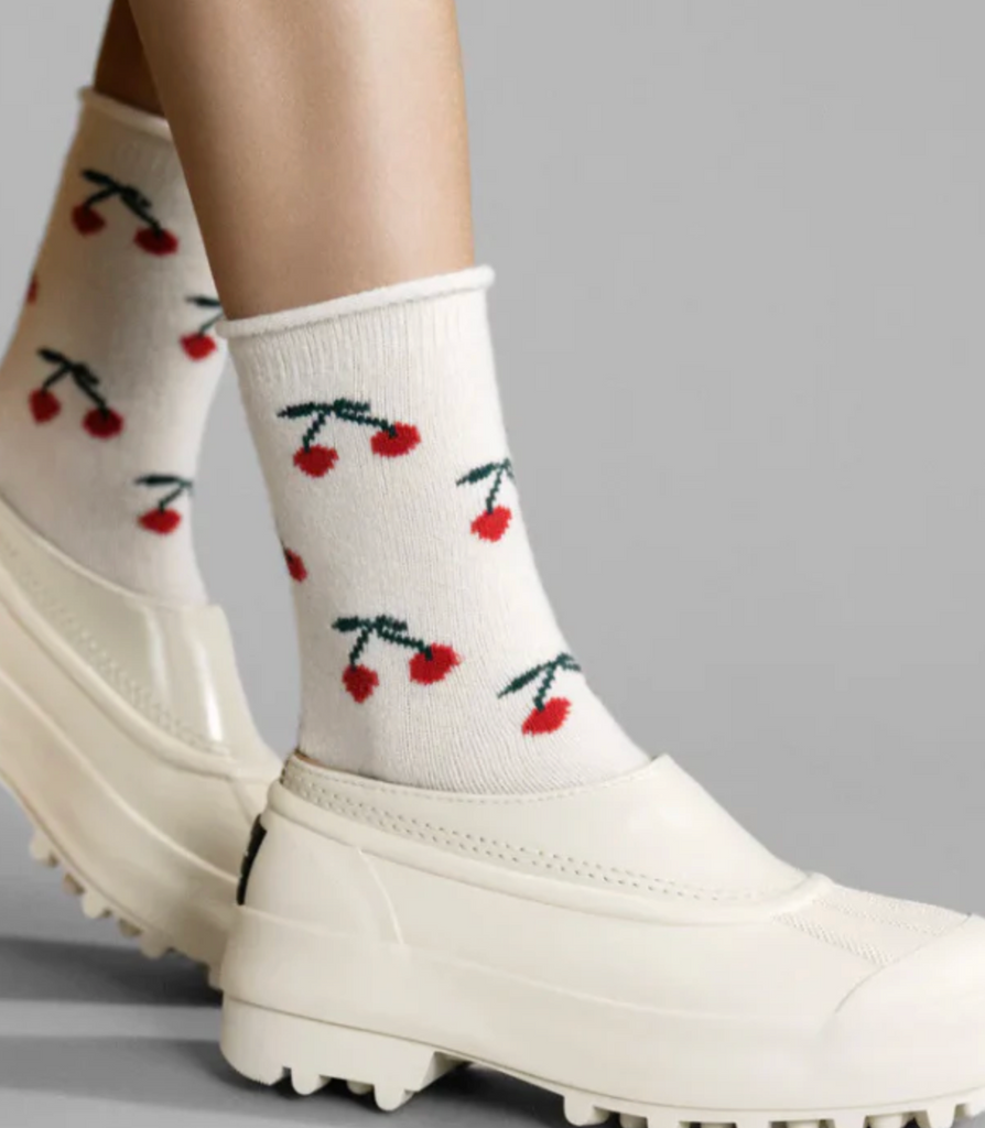 Step into cheery comfort with these Cherry Bomb Cashmere socks! With a playful print and cozy warmth, you'll never want to take them off (even if you're just lounging around the house). Complete with a rolled cuff, these socks are the perfect combination of fun and function.