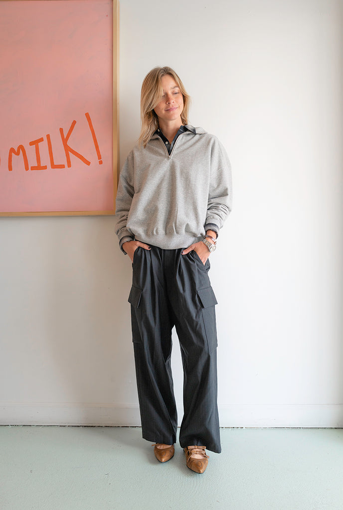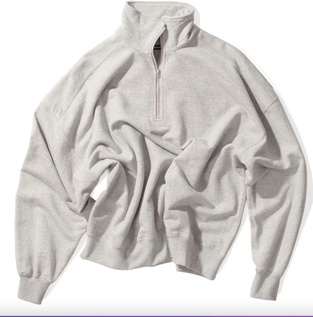 The ARK Sweatshirt is a high-neck half-zip pullover with a relaxed silhouette. It is made from a midweight high-gauge French terry cotton, tightly knit for a subtle luster and finished with soft, springy loop-twist yarn. Details include a metal half-zip, dropped shoulders, ribbed hem and cuffs and sculpted seam detailing across the body.